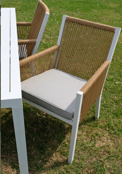 Silloncito LISA de estructura de aluminio blanco y soga natural. Incluye almohadón gris.